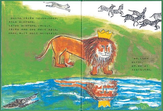 立派なかんむりをかぶっているジオジオは、ライオンの中でも一番強かった王さまです。一目置かれた存在でしたが、みんなから恐れられ、ずっとひとりぼっちでした。そんなジオジオも年を取り、ふと、だれかとゆっくりはなしてみたくなりました。